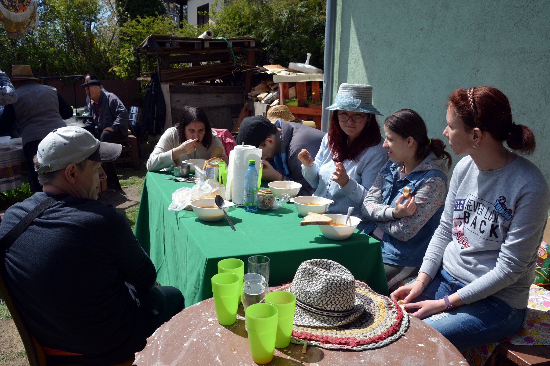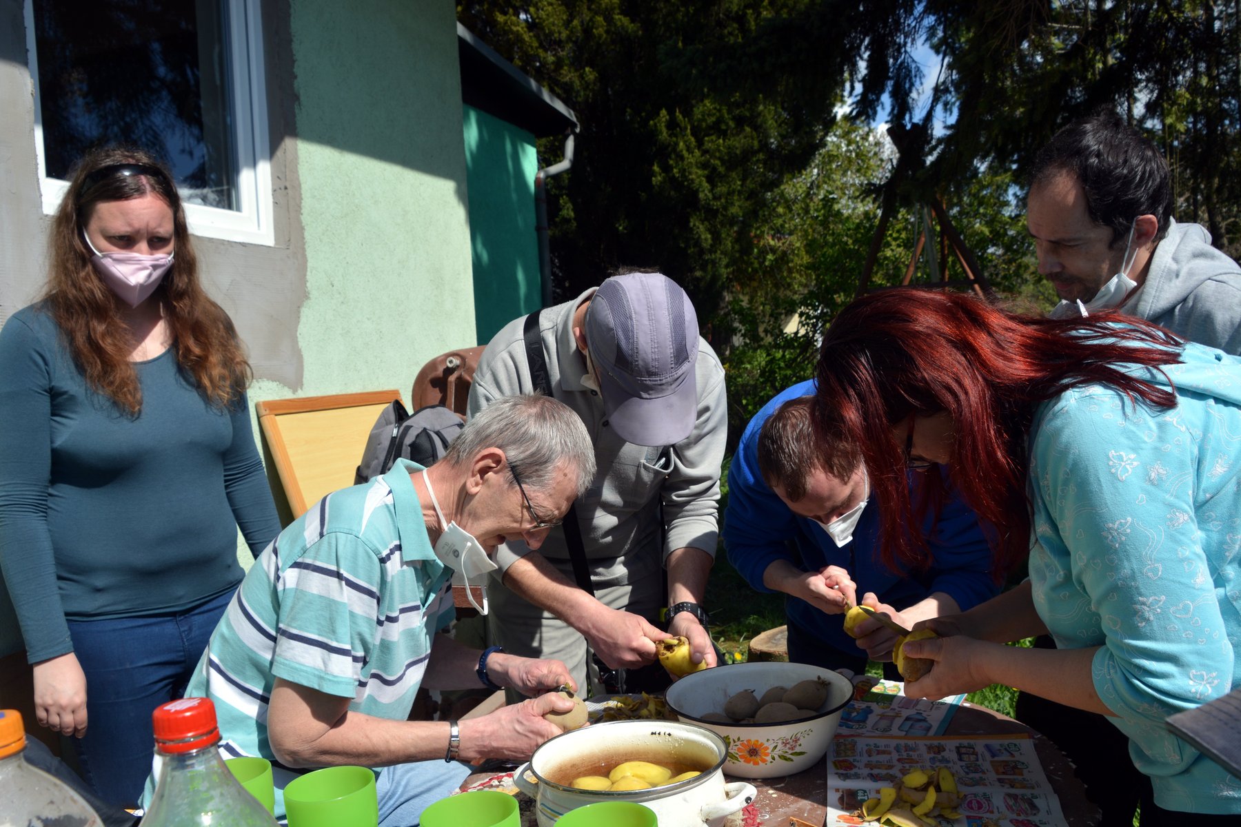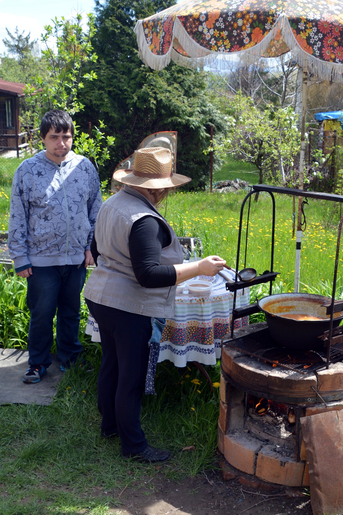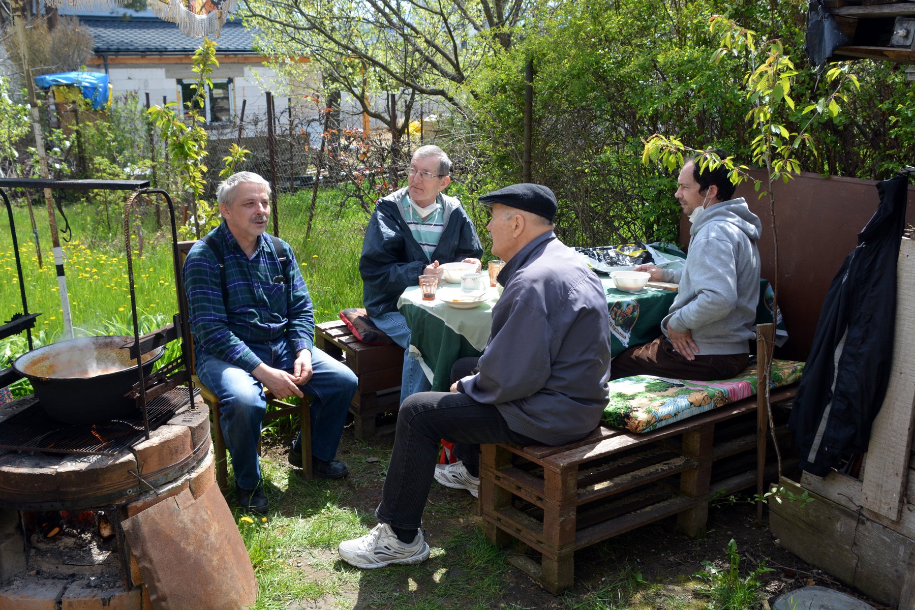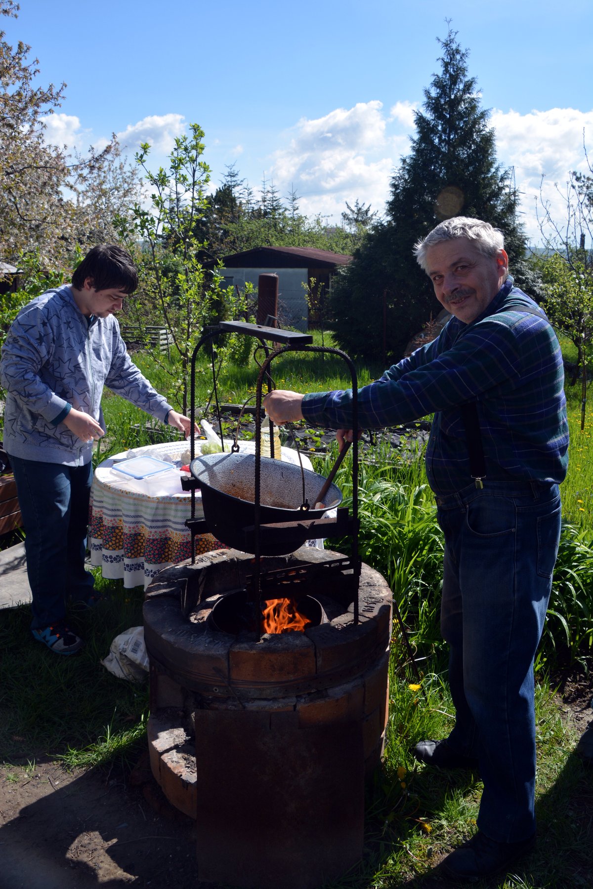 Spoločne sme sa stretli na parkovisku, odkiaľ nás náš oslávenec nasmeroval až na miesto oslavy. Tu už sa vo veľkom kotly smažila cibuľka. Lahodná vôňa v nás naštartovala všetky zmysly. Marika už na stôl prinášala obložené chlebíčky a zákusky. Ako sa na správnych gratulantov patrí, najskôr sme si splnili „povinnosť“ a obdarúvali sme Števka sladkými darčekmi, no najmä úprimnými blahoželaniami. Jeho radosť nemala konca kraja. Spoločne sme si pripili detským šampusom na jeho zdravie a hor sa do práce! Spoločne sme načistili zemiaky a zeleninu. Pán domáci starostlivo miešal všetky suroviny v kotlíku a vôňa guláša bola čoraz intenzívnejšia. Miška objavila záhradnú hojdačku, na ktorej sme sa takmer všetci vystriedali. Slniečka-chtiví sa vyvalili na záhradných ležadlách a nechali sa pohladiť slnečnými lúčmi. Dokonalá idylka! A tu už pani domáca zvoláva všetkých prítomných k degustácii guláša. Ej, ale bol dobrý! Aj dupľa sa zvýšila! A ako to už na poriadnych oslavách býva, prevetrali sme aj naše bránice a schuti sme si zaspievali naše obľúbené evergreeny. Čas plynul v príjemnej atmosfére, až nadišla chvíľa rozlúčiť sa.